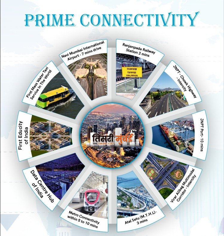 Third Mumbai offers seamless multimodal connectivity, including roads, railways, metro, airport, and inland waterways, supported by real-time traffic management and smart mobility solutions ensuring strong digital connectivity, while last-mile solutions make it easily accessible and inclusive for all, including the elderly and differently-abled.